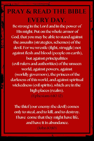 *Put on the full armor of God, so that you can take your stand against the devil’s schemes. For our struggle is not against flesh and blood, but against the rulers, against the authorities, against the powers of this dark world and against the spiritual forces of evil in the heavenly realms...And pray in the Spirit on all occasions with all kinds of prayers and requests. With this in mind, be alert with all perseverance and supplication for all the saints. (Ephesians 6:11-12,18)